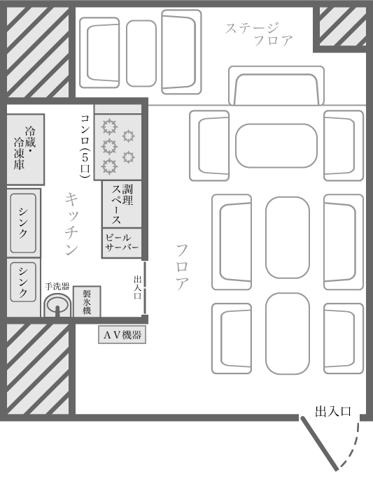 料理教室や試食会、ワークショップやゲーム大会、さらにステージを利用した発表会や舞台の練習など、自由な発想でさまざまなイベントに当店をご活用いただけます。